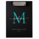 Schwarz-Aquamarin-grünes Monogramm Eleganter Skrip Klemmbrett