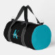 Diese einfache, phantastische, schwarze, kleine Duffle-Tasche mit Ihrem Vornamen in einem trendigen Script-Schriftart in weiß und Ihr erster Einstieg in einen modernen Cap-Schriftart in aquamarin ist perfekt für Sie. Es ist stilvoll und trendig und dennoch sehr klassisch. Es ist fantastisch, um zu reisen, in den Fitnessraum zu gehen, und ein extra Set Kleidung für jede Veranstaltung zu bringen.