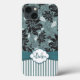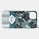 Schwarz, aquamarin, weißes Blumenmonogramm Case-Mate iPhone Hülle
