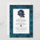 Halloween Gotische Hochzeitsessen Probe Einladung mit einer blauen Rose und Vintagen Schädelmustern.