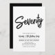 Feiern Sie Ihren besonderen Tag mit dieser stilvollen 70. Geburtstagsfeier. Dieses Design verfügt über ein Chic-Pinselskript mit einem sauberen Layout in Schwarz-Weiß-Farbkombination. Weitere Designs gibt es in meinem Shop BaraBomDesign.