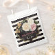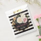Diese eleganten und modernen Begeudertaschen sind mit einem farbenfrohen Blumenstrauß auf einem schwarzen und Elfenbeinhintergrund sowie einem schwarz-goldfarbenen, klammerförmigen Textbereich ausgestattet. Das Bouquet bietet hübsche Rose in Creme, Elfenbein und Rosa mit orangefarbenen peruanischen Lilien und grünem Blattwerk. Unter dem Bouquet steht in der benutzerdefinierten Schrift: "Melissas Brautparty" ist in Korallenrosa gedruckt mit dem Datum der Veranstaltung in Salbei grün unten, und die Worte "Danke!" in Elfenbein unten. E-Mail niteowlstudio@gmail.com , wenn Sie passende Artikel benötigen oder Hilfe bei der Anpassung des Textes benötigen.