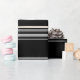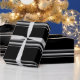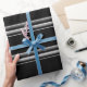 Schwarzes, geflochtenes Wickelpapier mit horizontalen 3D-Metallic-Linien, die über einen reinen schwarzen Hintergrund laufen. © Morning 6