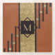 Ein gewagtes, schwarz-goldenes geometrisches Design auf einem hellbraunen Lederhintergrund, kombiniert mit einem minimalen Monogramm-Initial, schaffen einen raffinierten und einzigartigen personalisierten Untersetzer. Diese Vintagen Schwingungen werden bestimmt gefallen, und ein Set dieser Untersetzer, gepaart mit ihrem Lieblingstippel, wird das perfekte Geschenk für den Vatertag, Geburtstage, Abschluss, Trauzeugen oder einen Hochzeitsjubiläum machen.