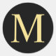 Schwarz-Gold-Elegant-Monogramm Runder Aufkleber