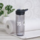 Diese Mannschaft farbenfroh zum Thema Fußball ist für Jungen oder Mädchen geeignet und zeigt das realistische Bild eines schwarzen, grauen und weißen Fußball, auf dem Sie das Monogramm oder den Buchstaben des Athleten personalisieren können - den Schulnamen oder Clubnamen, der den Fußball umrundet, den Namen des Athleten und die Trikotnummer auf den Flaschenseiten - von katz_d_zynes