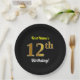 Schwarz, Imitate Gold 12. Geburtstag + Individuell Pappteller
