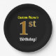Schwarz, Imitate Gold 1. Geburtstag + Individuelle Pappteller