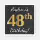 Dieses einfache Papier-Serviettendesign enthält eine Nachricht wie "Andrews 48. Geburtstag!", mit dem "48." mit einem goldfarbenen Imitat auf schwarzem Hintergrund. Der Name kann personalisiert sein. Es könnte auf einer Geburtstagsparty für jemanden verwendet werden, der seinen achtundvierzigsten Geburtstag feiert. [~Z0000079]