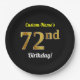 Schwarz, Imitate Gold 72. Geburtstag + Individuell Pappteller
