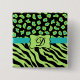 Schwarz, Kalkgrün und Türkis Zebra & Geparden Button