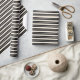 Schwarze und Mandelcreme, doppelt horizontal und minimal dünn Streifen Muster. Einfache, minimalistische Streifen, nicht schwarz-weiß, sondern schwarz und cremefarben. Klassisches, modernes, sauberes Design.