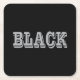 Schwarz mit grauem Text auf schwarzer, solider Far Rechteckiger Pappuntersetzer