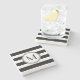 Schwarz | Monogramm der weißen Streifen Steinuntersetzer