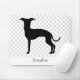 Desteis original schwarze Silhouette Design eines niedlichen italienischen Greyhound / Iggy Rasse Hund. Die Farbe der Silhouette kann auf Wunsch in jede andere Farbe im Designwerkzeug geändert werden. Der Hintergrund weist ein Muster grauer Hundepfoten auf. Es gibt auch einen personalisierbaren Textbereich für einen Namen.