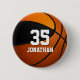 Dieser Basketballknopf für Jungen oder Mädchen zeichnet sich durch das realistische Bild eines Basketballs aus, der aus zwei farbigen Panels besteht - einem schwarzen und einem orangefarbenen - und mit dem Namen des Athleten und der Jerseynummer in einem Schriftart im Stil eines Buchstaben personalisieren kann - durch katz_d_zynes