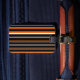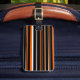 Gepäckanhänger mit schwarzen, orangen und weißen Streifen. Personalisieren Sie Ihre Informationen mithilfe der einfachen Vorlagen. Schriftart, Schriftart und Schriftart sind individuell einstellbar.