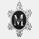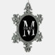 Personalisierte Monogramm- und Namensgeschenke mit personalisiert-weißem Monogramm im klassischen Serif-Schriftart-Stil mit einem Namenskasten in der Mitte des Monogramms auf schwarzem Hintergrund.