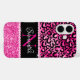 Schwarz-Pink-Leopard-Spot-Glam-Monogramm iPhone 16 Hülle
