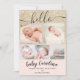 Eine moderne, schlichte und elegante Rosa und hellgelbe goldfarbene Glitzer ombre Glitzern Mädchen Geburtsankündigung mit 5 Foto Gitter Collage, und eine elegante Typografie Kalligraphie, mit hallo Babyname. Das Baby vorstellen!