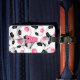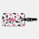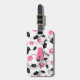 Dieses Fußball-Team Farben Gepäckanhänger zeigt das Bild eines Clusters verschiedener Größen rosa, schwarz und weiß Fußball-Bälle auf der Vorderseite - passen Sie mit dem Monogramm oder dem Varianzbuchstaben des Athleten an und geben Sie hinterher die Adresse an - von katz_d_zynes