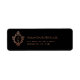 Ein elegantes Schwarz-Rosa-Design mit Vintager Luft, mit einem Hochzeitsmonogramm aus den 2 Initialen der Braut und Bräutigam, in einem Vintagen Imitat Rose Gold-Folie Wappen, vor dem Namen und der Adresse, in rosa Kappen geschrieben. Der Hintergrund ist schwarz.
