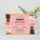 Schwarz-Rosa-Retro-Katze Geburtstag Einladung