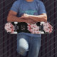 Rosa Aquarellblüte gemalt Kirschblüte mit Regenfällen auf einem schwarzen Hintergrund Design für Teenager Mädchen. Passen Sie dieses Skateboard mit dem Monogramm Ihrer Tochter an!