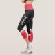 Die Leggings sind in Schwarz und Rot gehalten und zeichnen sich durch ein elegantes, weißes Blumendesign am Bund und an den Beinen durch weiße Streifen aus. Einfach anpassbar, indem Sie auf beiden Seiten Ihren Namen auf einem kalligraphisch weißen Schriftart hinzufügen.