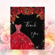 Bitte beachten Sie, dass dieses Dankeschön Hinweis ist auf Flyer Papier und sehr dünn. Umschläge sind nicht enthalten. Für dickere Dankeschön Karten (gleiche Design) besuchen Sie bitte unseren Shop. Ein weiblicher und eleganter Geburtstag danke Ihnen zur Kenntnis. Schwarzer Hintergrund mit rotem Imitat, Glitzer, Glitzern, rote Rosen und rotem Kleid. vorne ein großes handgeschriebenes Skript und den Text: Danke. Zurück: Personalisieren Sie Ihre Dankeschön Notiz und Name. Der Name ist mit einem modernen handgeschriebenen Stilskript geschrieben.