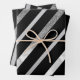 Schwarz-Silber-Diagonalstreifen-Muster Geschenkpapier Set