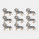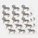 Desteis originelle Cartoon-Illustration eines niedlichen glatten Haar schwarz und tan daple Fell Farbe Dackel züchten Hund. Das Hundedesign wird neunmal auf jedem Blatt platziert. Der Hintergrund weist ein Muster grauer Hundepfoten auf.