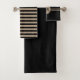 Dieses moderne Badehandtuch-Set ist mit einer massiven schwarzen Badewanne, schwarz gestreiften Handtüchern und einem monogramm Waschlappen ausgestattet. Dieses wunderschöne Handtuchhandtuch-Set empfängt Sie mit einem modernen schwarzen Bad. Dieses Design wird sowohl Männer als auch Frauen ansprechen.