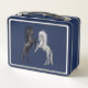 Schwarz und ein weißes Pferd, das kämpft Metall Lunch Box