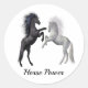 Schwarz und ein weißes Pferd, das kämpft Runder Aufkleber