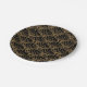 Deko-Fan-Blume-Motiv-Party-Platte aus Schwarz und Gold. Das Design zeichnet sich durch ein sich wiederholendes Schwarz-Gold-Lüftermuster aus. Motiv im Gatsby-Stil der 20er Jahre.