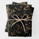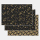 Elegantes schwarz-goldenes Walentinpapier. Dieses Set enthält drei Blätter Papier mit schwarzem Hintergrund und goldenen Herzmustern, für eine Touch der Klasse.
