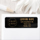 Schwarz und goldfarben elegant berufliche Rücksendeadresse mit Vorlagenfeldern für Name, Firmenname/Firmentitel, Logo (Foto oder andere Grafik) und Kontaktinformationen. Sie können die Textgröße, den Schriftart und die Farbe so anpassen, dass Sie Ihren persönlichen Vorlieben entsprechend Anzug geben können.