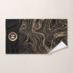 Modernes Set mit abstraktem, wirbelfestem in Schwarz und Gold. Die eleganten und stilvollen Handtücher ergänzen das vorhandene Dekor.