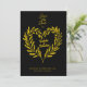Diese luxuriöse Schwarz-Gold-Save the Date-Karte ist die perfekte Möglichkeit, Ihre anstehende Hochzeit im Stil anzukündigen. Mit einem klassischen Goldtext auf einem schwarzen Hintergrund strahlt die Karte zeitlose Eleganz und Eleganz aus. Das Lorbeerkerdesign fügt eine Touch Romantik hinzu, die Einheit und Liebe symbolisiert, während die individuell anpassbaren Details dafür sorgen, dass sie perfekt zu Ihrem Hochzeitssmotiv passen. Die Kombination aus Schwarz und Gold ist ideal für feierliche Hochzeiten und macht eine kühne, unvergessliche Aussage, die den Ton für ein wirklich glamouröses Fest absteckt.