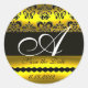 SCHWARZ- UND GOLDDAMASK-MONOGRAMM RUNDER AUFKLEBER