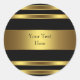 Schwarze und goldene Aufkleber mit schönen goldenen Streifen auf schwarzem Hintergrund. Fügen Sie Text zu personalisieren für Ihre Veranstaltung.