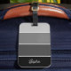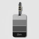 Dieses trendige Gepäckanhänger mit vier Streifen in verschiedenen ombre Farbtöne von schwarz, kohle und grau, und Ihr Name in Schrift-Typografie für ein modernes Aussehen.