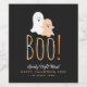 Niedliches Halbweinetikett mit albernen lustigen Gespenstern und "BOO!" Text in schwarz, weiß und orange. Personalisieren Sie Ihren Drink mit Namen, kurzen Gruß und Namen. Ideal für Halloween-Partys oder Geschenke
