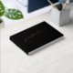 Ein elegantes und anspruchsvolles Gästebuch in Schwarz und Gold mit Rose-Goldfolie-Kalligraphie mit Ihren Namen in einem modernen san-Serif-Schriftart auf der Vorderseite, Wirbelsäule und Rückseite.