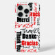 Dieses Handy-Gehäuse ist mit rot und schwarz Dankeschön geschrieben in mehreren Sprachen und eine Vielzahl von Schriftart-Stile über weiß. Klicken Sie unter Bearbeiten und Hintergrund auf Anpassen!, um eine andere Hintergrundfarbe als weiß auszuwählen.