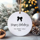Schwarz und Weiß | Bow und Foto Happy Holidays Keramik Ornament