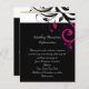 Feines und auffälliges zeitgenössisches Schwarzes Hochzeitszenario mit weißem und magentinischem Akzent, mit zartem, wirlem Blätterhintergrund. Passen Sie Ihre Hochzeitsdetails online an.