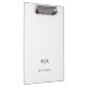 Dieses moderne Clipboard-Design zeichnet sich durch einen schlichten, weißen Hintergrund aus. Ihre Initialen in fett schwarzem Text sorgen für ein berufliches und einfaches Aussehen.