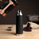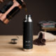 Dieses moderne Design der Wasserflasche zeichnet sich durch einen schwarzen Hintergrund aus. Ihre Initialen in fett weißem Text sorgen für ein schlichtes, stilvolles und dennoch berufliches Aussehen.